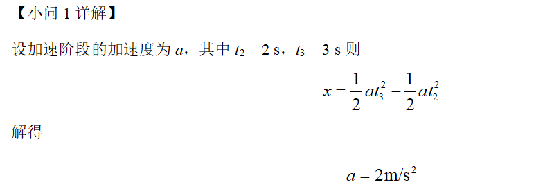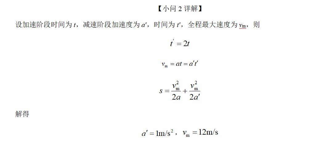 [问答题] 2024年5月底,武汉市正式投入运营上千辆无人驾驶出租车“萝卜快跑”,并以超低的优惠价格吸引广大市民,这引起了社会的广泛关注。在某次乘客体验中,车从静止开始做匀加速直线运动,某时刻因系统检测到前面红灯即将出现,车立即以另一加速度做匀减速直线运动,刚好在斑马线前停止。若测得匀加速阶段第3 s内位移为5 m,匀加速与匀减速的时间之比为1∶2,全程总位移为108 m。求