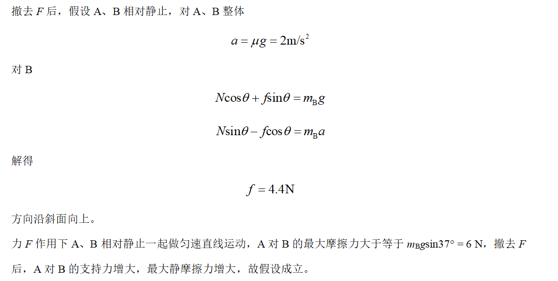 若某时刻突然撤去恒力F,求此时A对B的摩擦力。