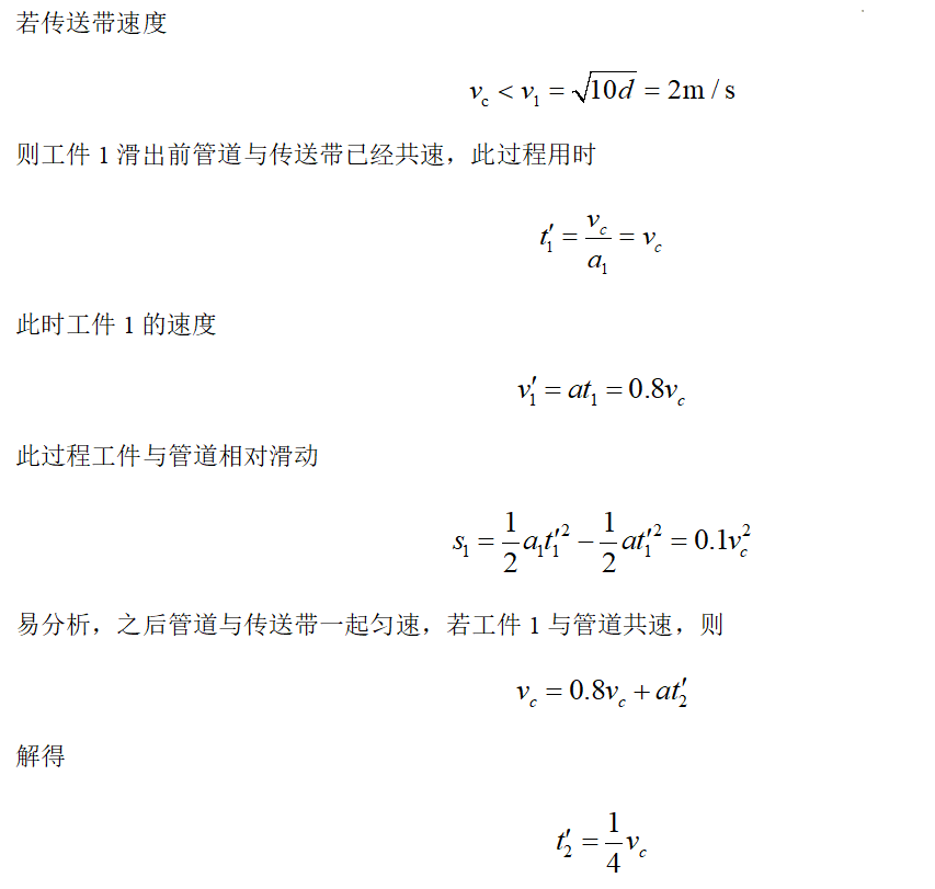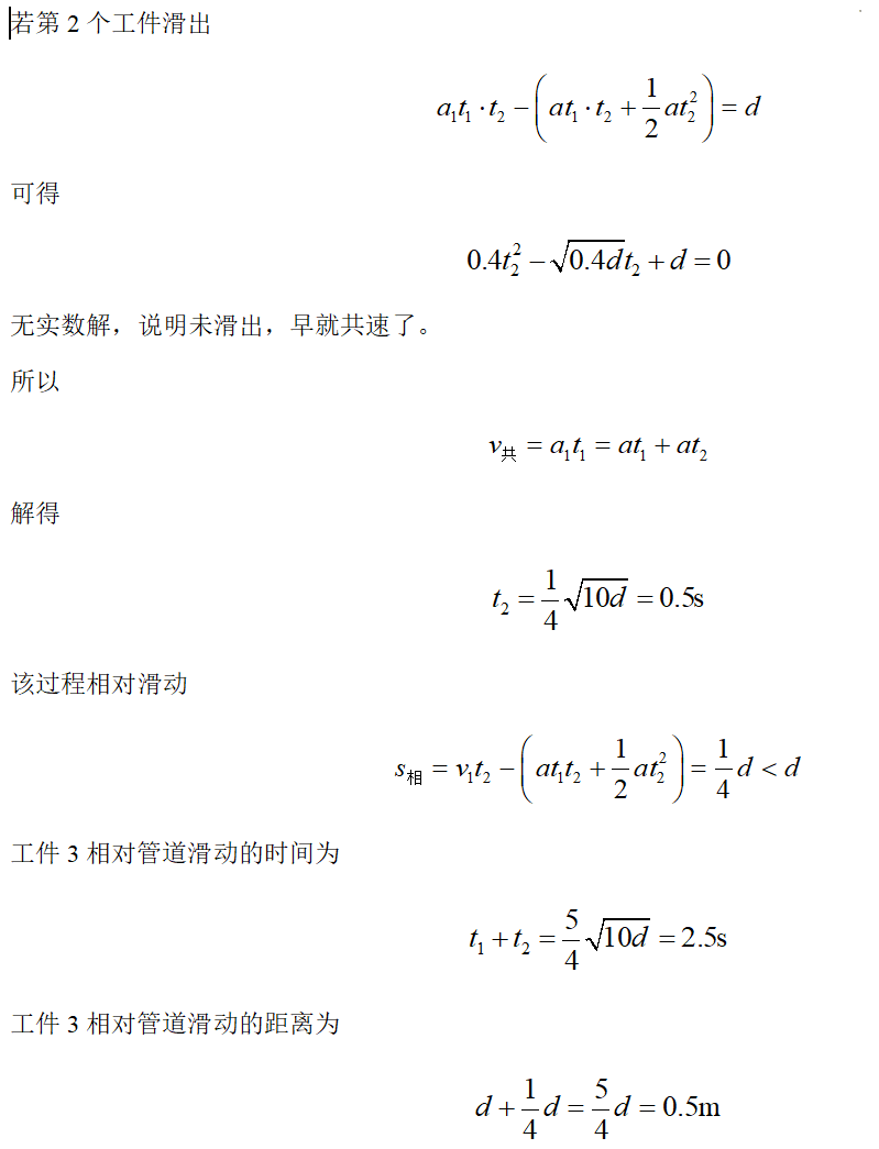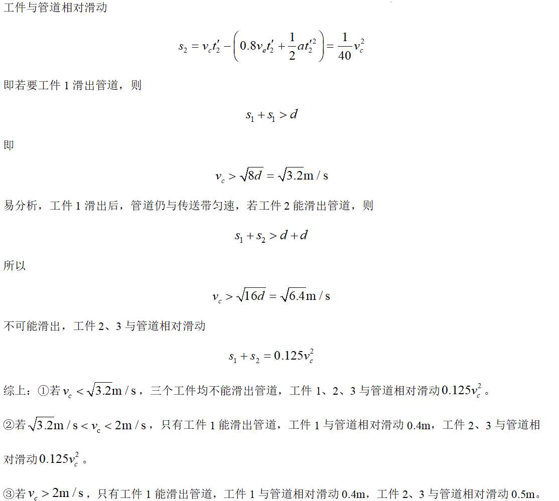 若传送带运行速度足够大,求工件3相对管道滑行的时间及距离