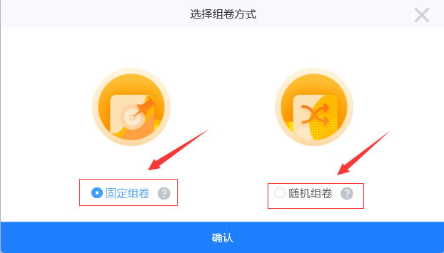 6、选择模式:分为“固定组卷”或者“随机组卷”,选择一种,点击确认