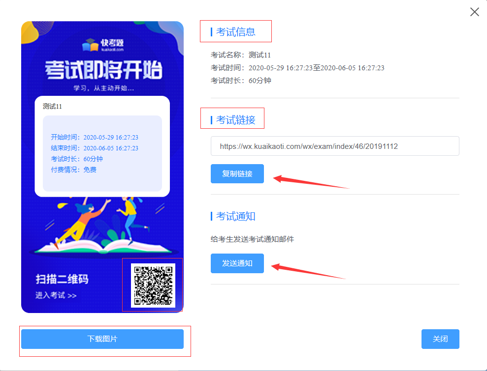11、最后,可将直接生成的海报,或者是链接分享到各大平台或者直接转发考生,也可直接给考生发邮件通知。