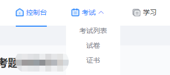 2、进入系统控制后台,在上方导航栏找到考试功能,下拉选择证书功能,点击进入即可。
