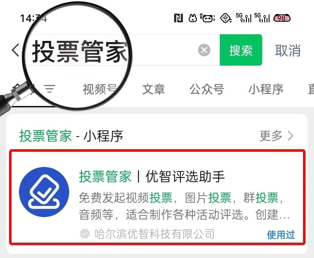 1. 微信内搜索 投票管家 小程序