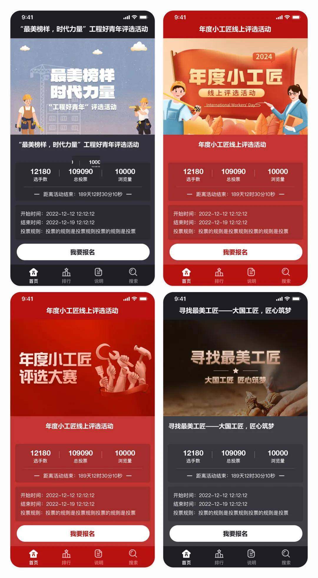 3、您也可以点击底部创建投票按钮,里面有年度小工匠评选大赛的主题案例专题供您参考。选择一个主题,年度小工匠评选大赛相关信息,设定时间。点击创建即可完成。