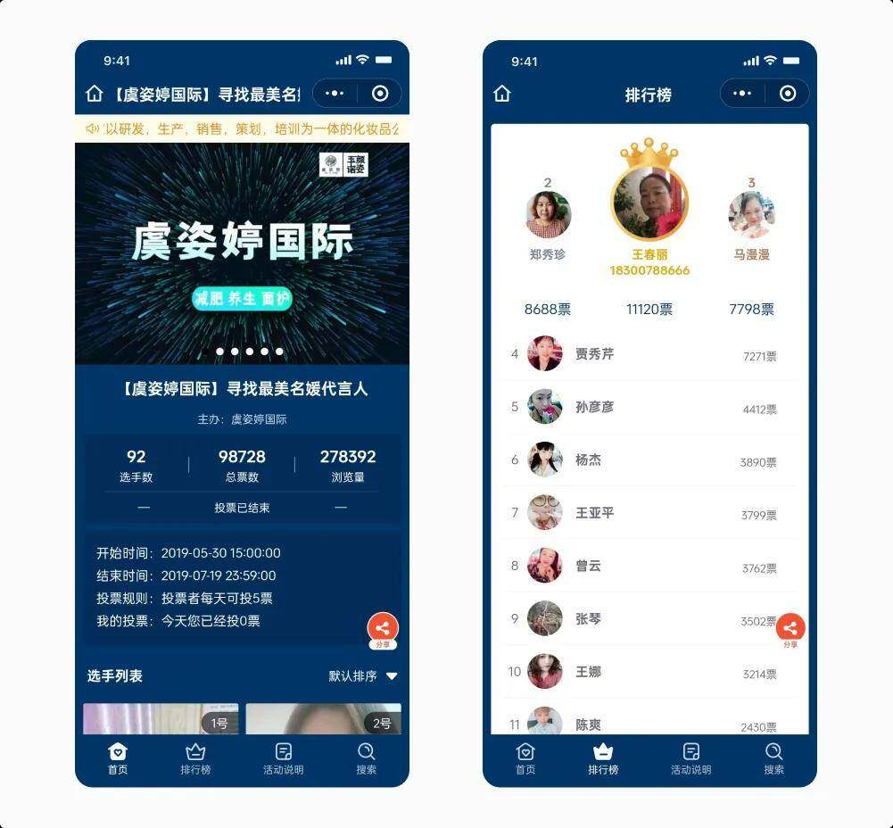 案例二:【虞姿婷国际】寻找最美名媛代言人活动,由虞姿婷国际举办,活动举办期间,浏览量达到了27万,参与量达到了9.8万。