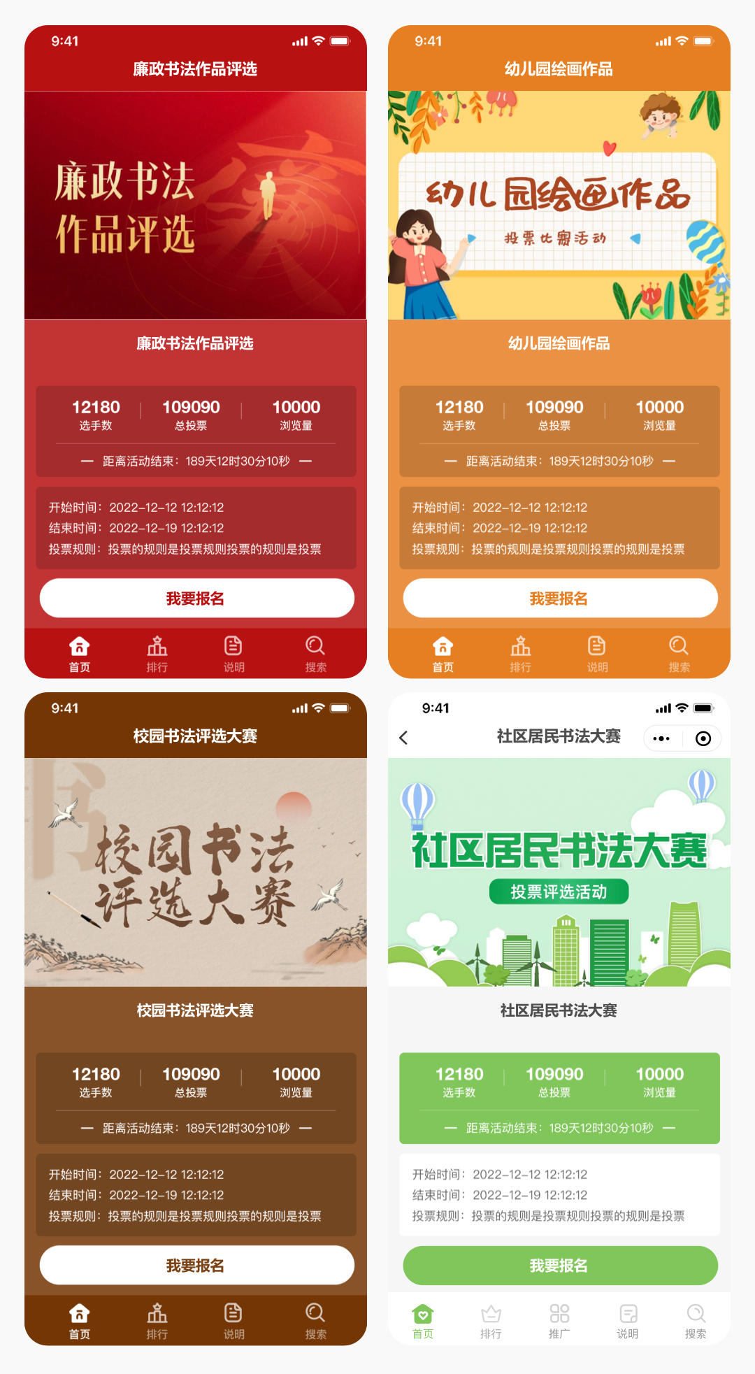 上面4套主题适合廉洁书法作品投票评选,同时也可以找到客服帮您制作好看的封面来适合更多的廉洁书法作品相关的投票评选活动。