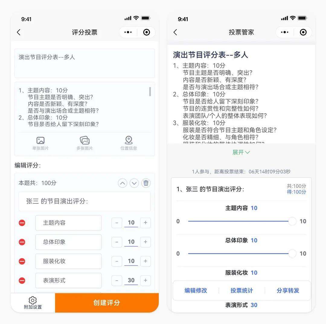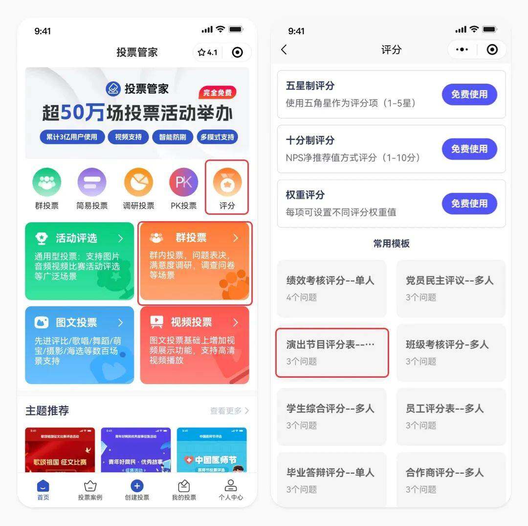 投票管家小程序根据市场和用户反馈,精心打造了3种评分投票模式。