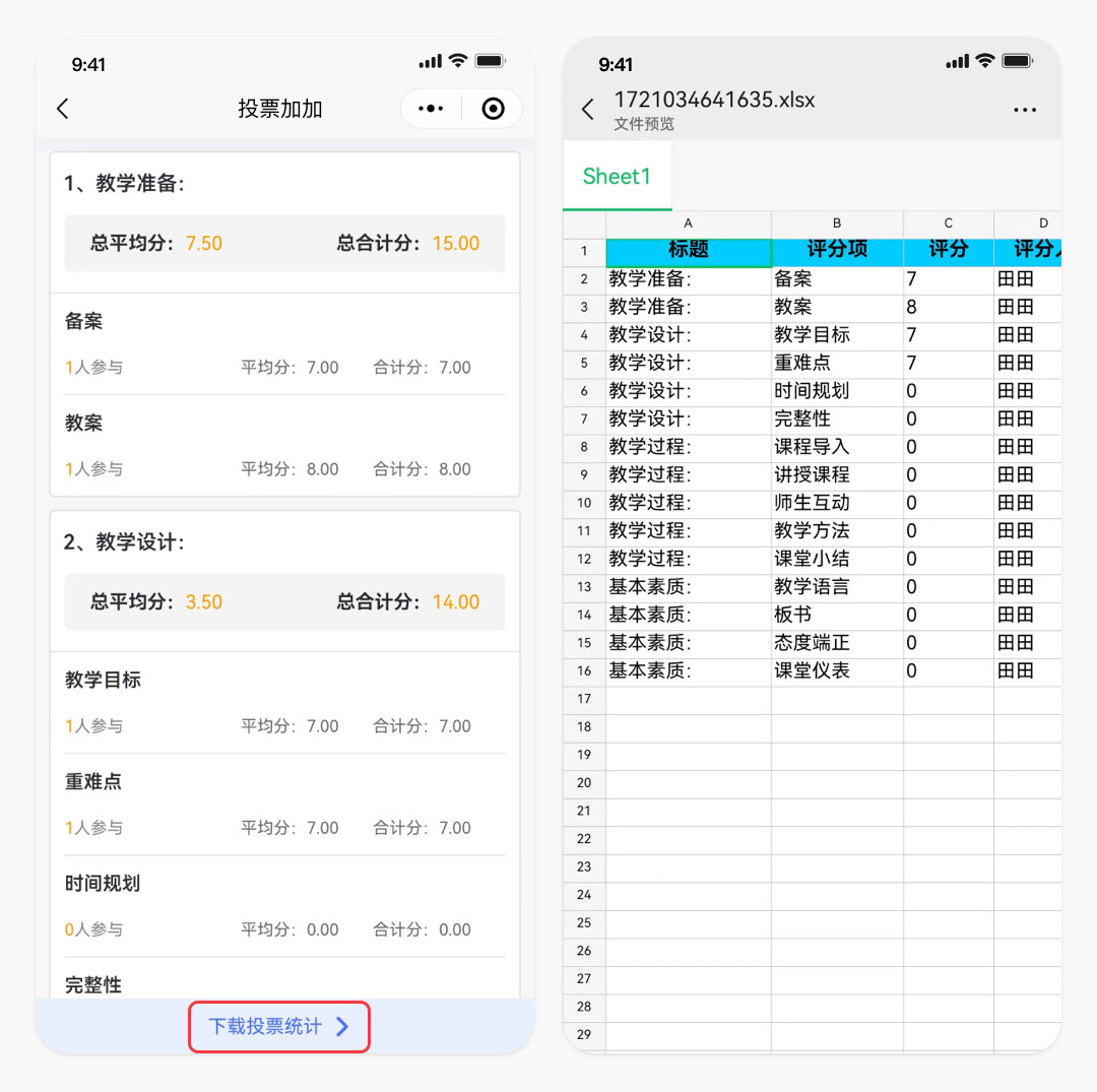 4.投票加加支持投票统计表下载,创建者在投票结束后,点击投票统计,再点击下载投票统计,这样excel统计表格在手机上也可以看了。