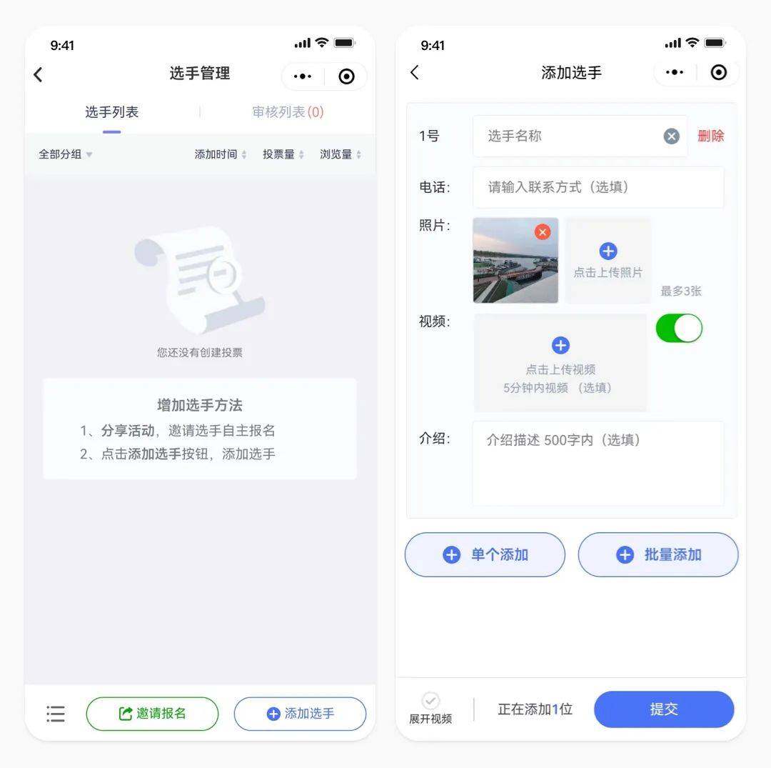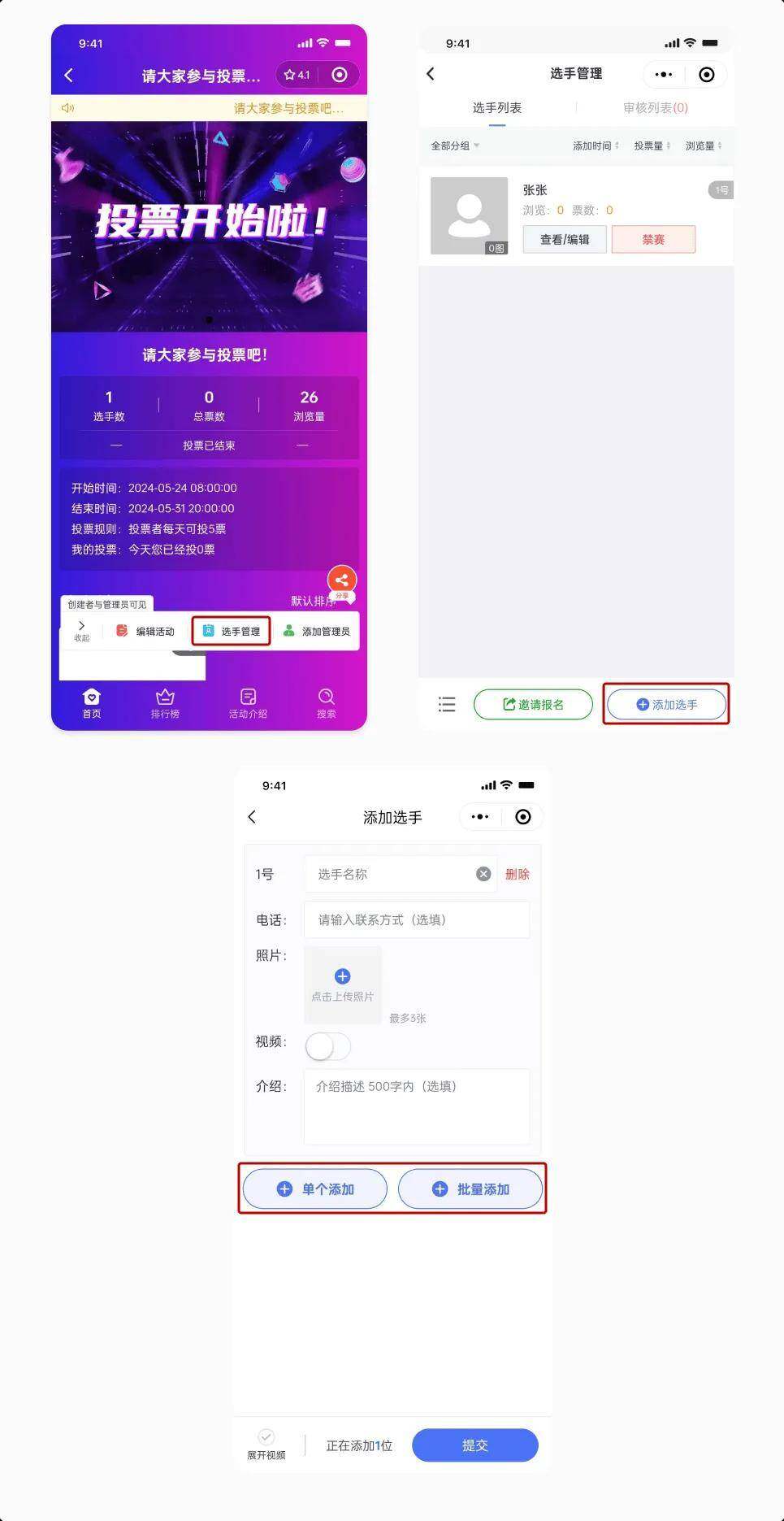 2、在投票首页点击选手管理,点击添加选手,这样就可以把选手的图片上传成功了。