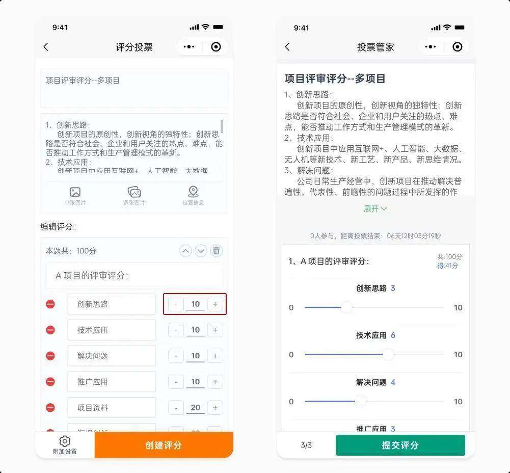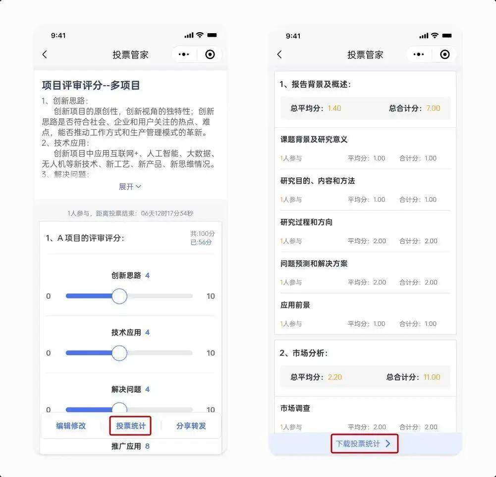 微信投票是一种在微信平台上进行的投票活动,通常需要通过小程序来实现。用户不需要花费花费时间下载新的应用程序、完成复杂的注册流程,只需要在微信平台搜索并打开,就可以轻松创建或参与投票活动,极大地提升了用户参与的幸福度和投票效率。在功能方面,小程序提供了多种投票模式,如单休、多选、匿名投票等,可以充分满足不同场景下的投票需求。从社会公益活动到学校各类比赛,亦或是企业内部统计,都可以轻松完成。用户可以自定义封面图、投票主题等,也可以在公众号的往期推文中寻找合适的元素,如有需要,可以联系客服帮您制作好看的封面。除此之外,支持投票结果统计表下载,用户可以随时查看投票进度,为投票结果提供更加准确、更加及时的数据支持。微信投票不同分数项评分,即为权重评分模式。