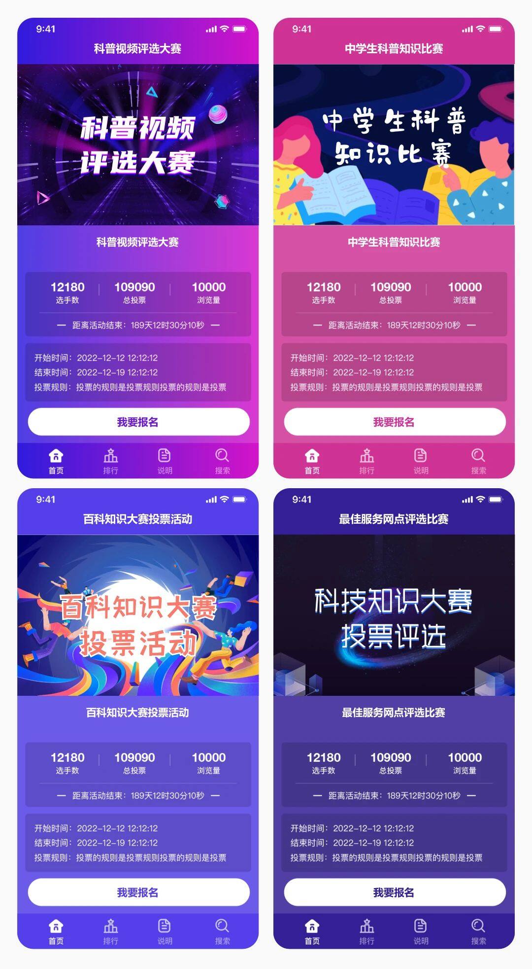 1.科普视频评选大赛,2.中学生科普知识比赛,3.百科知识大赛投票活动,4.科技知识大赛投票评选