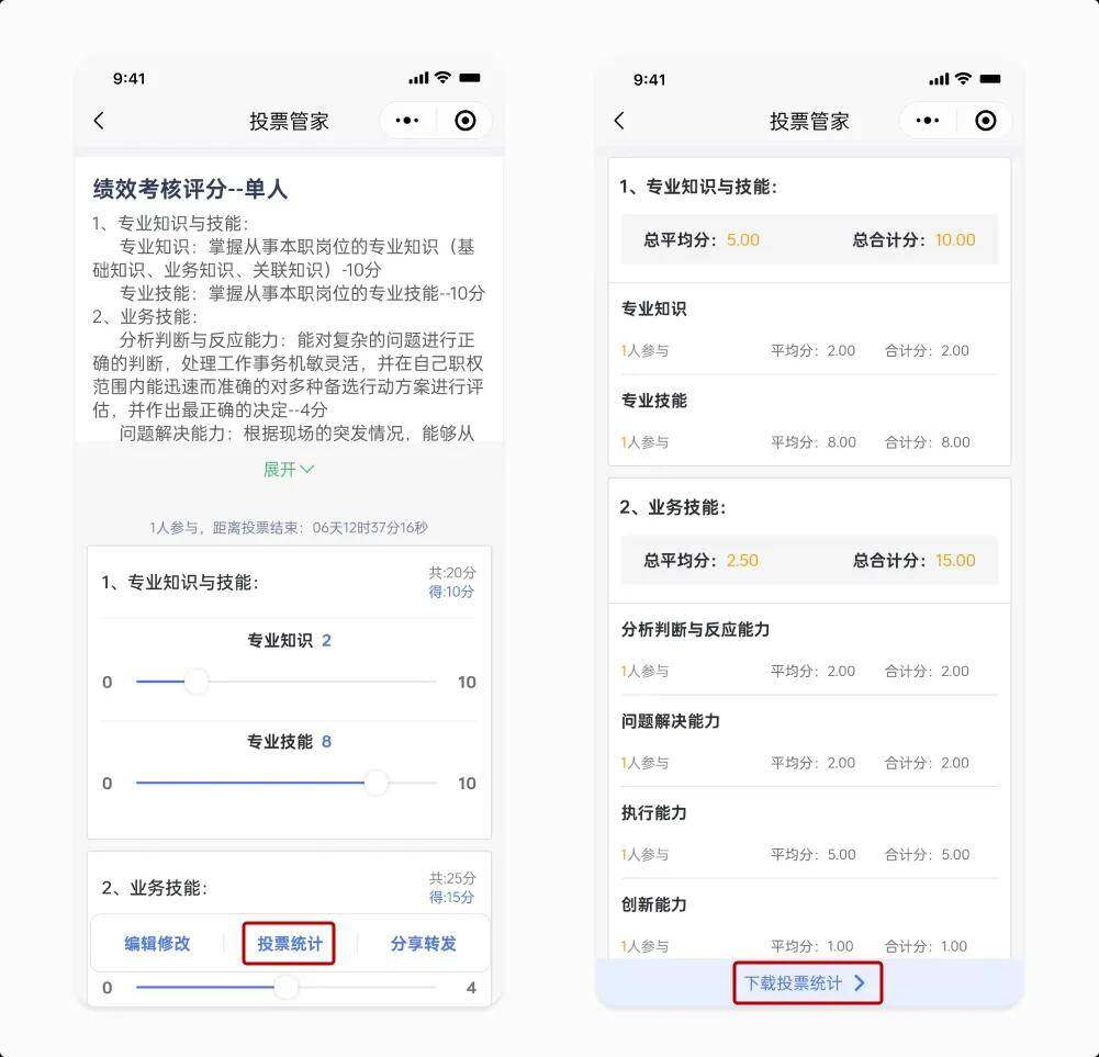4、投票管家支持投票统计表下载,创建者在投票结束后,点击投票统计,再点击下载投票统计。