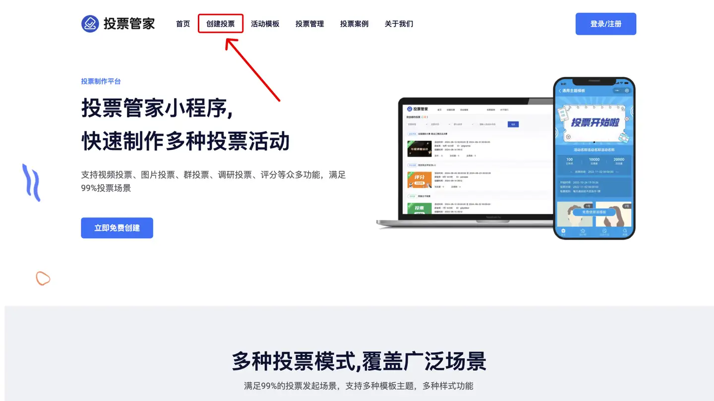进入投票管家网站,注册登录后即可开始创建投票活动。