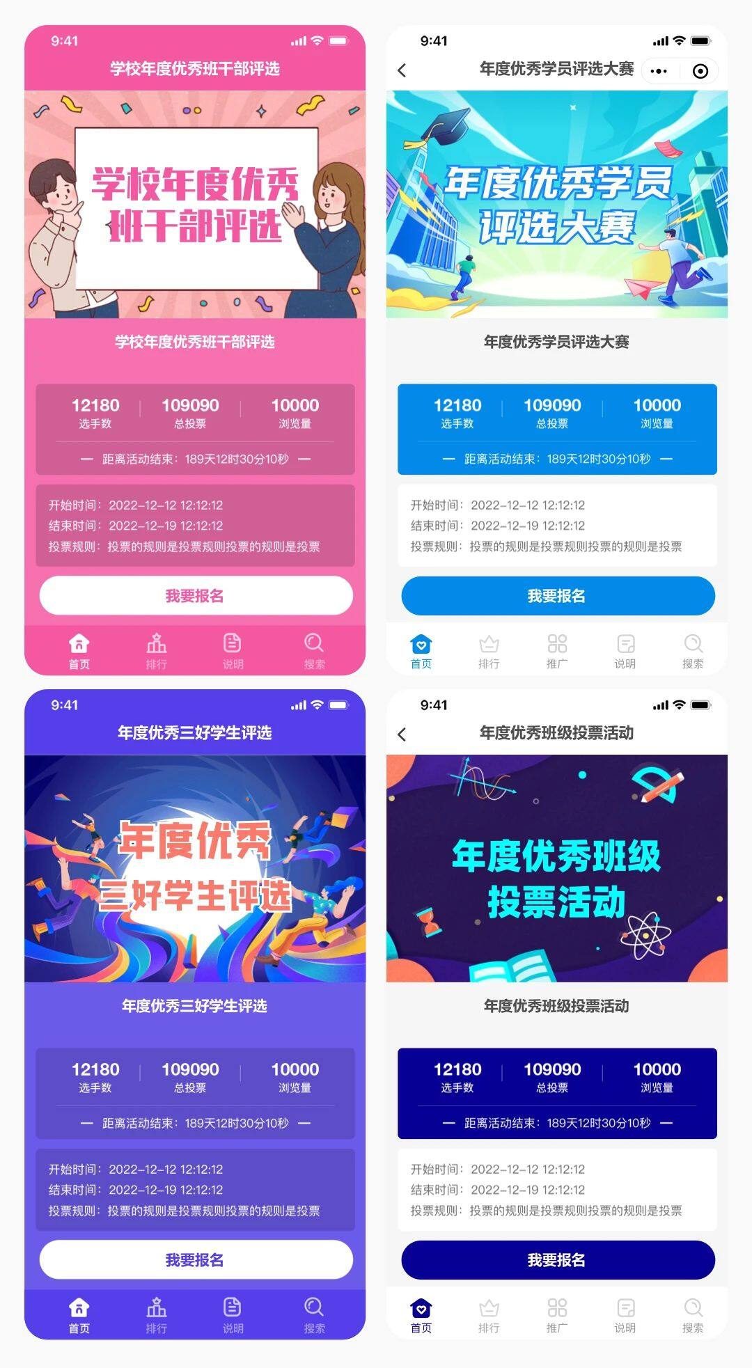 以上4套主题适合:学校年度优秀班干部评选、年度优秀学员评选大赛、年度优秀三好学生评选、年度优秀班级投票活动