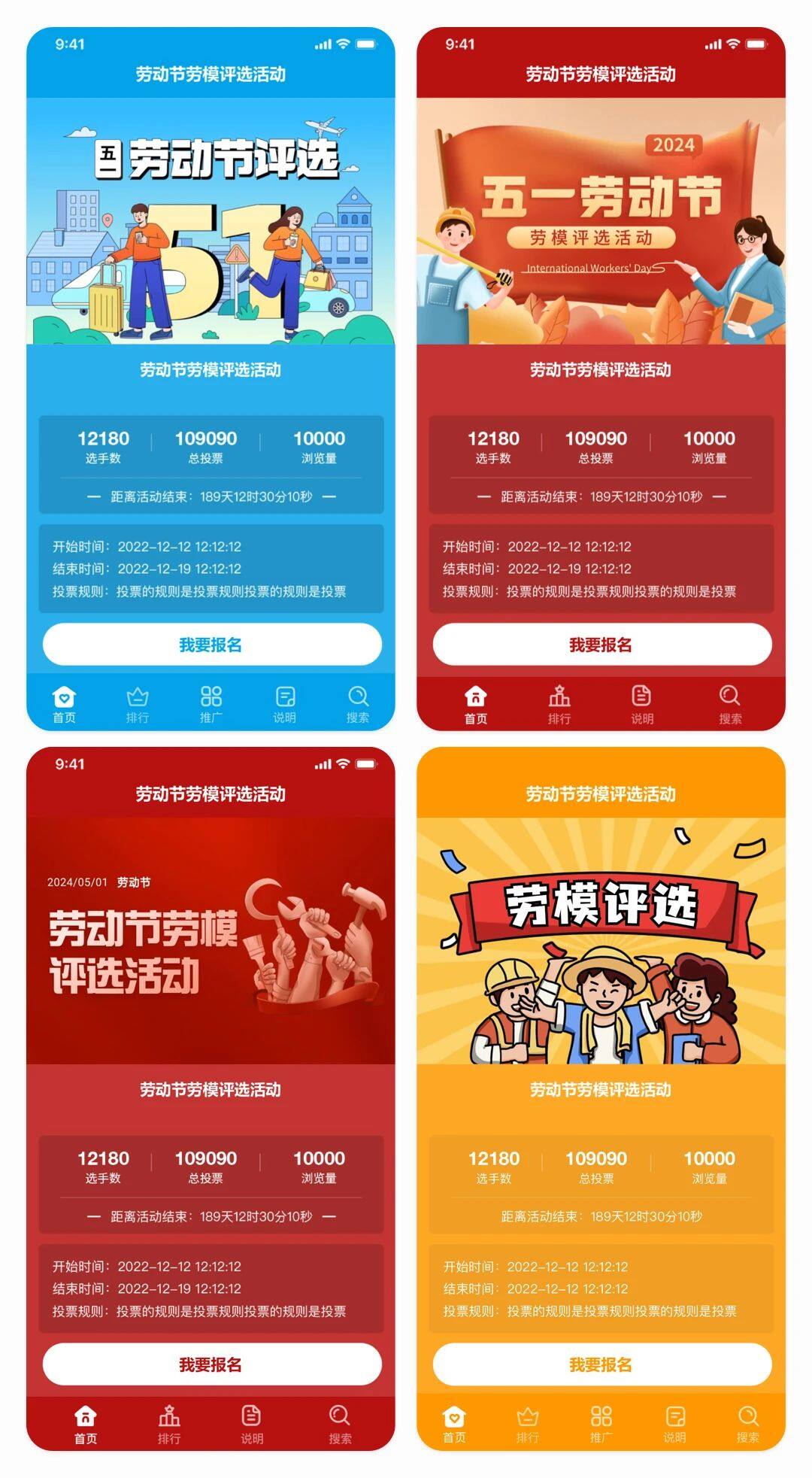 火投票包含上百套通用主题,不仅可用于劳动节劳模评选活动策划方案,也能用于五一劳动节投票活动,寻找身边最美劳动者投票活动等场景。