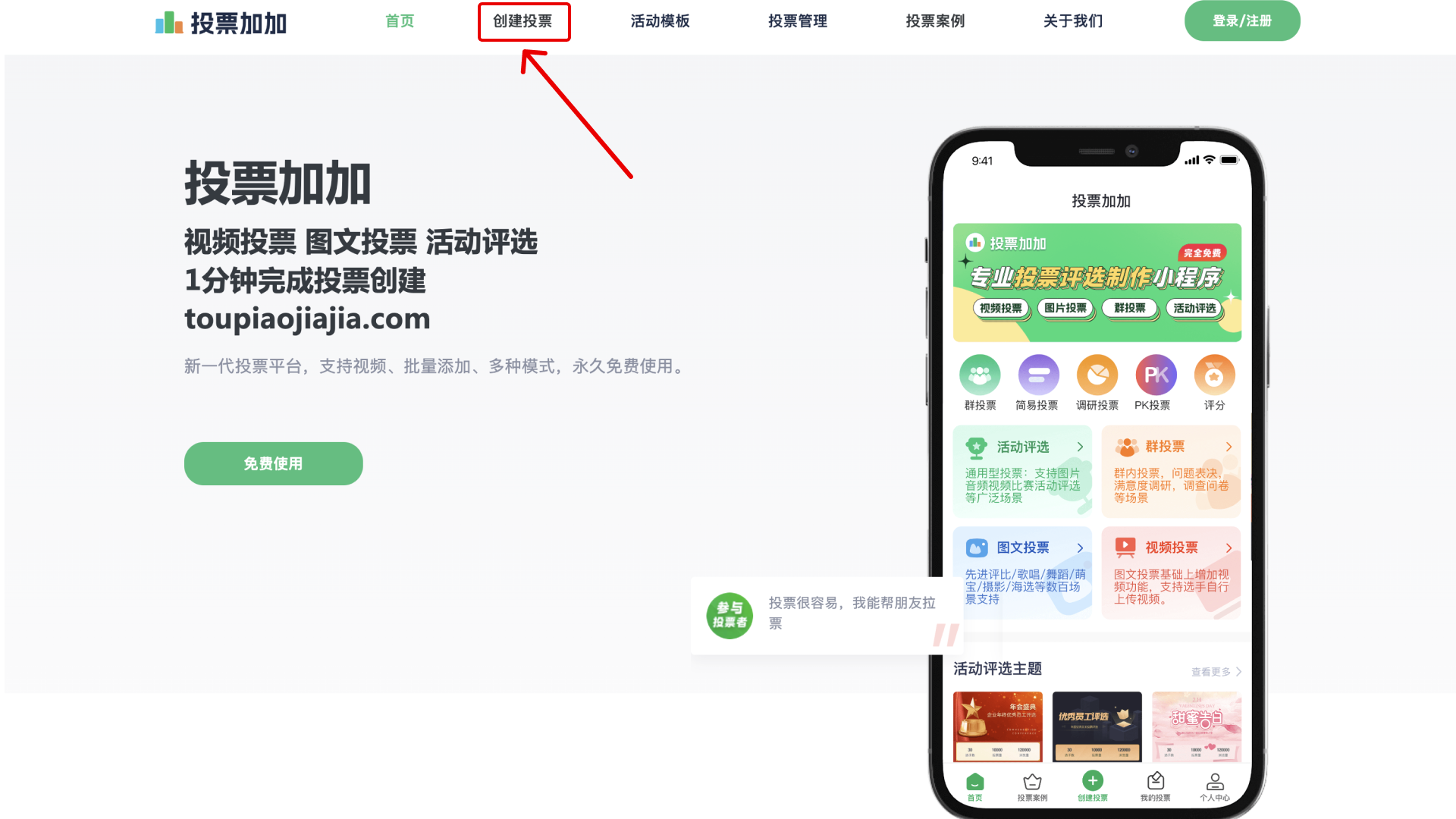 打开电脑浏览器,搜索投票加加,进入专业的投票制作平台。