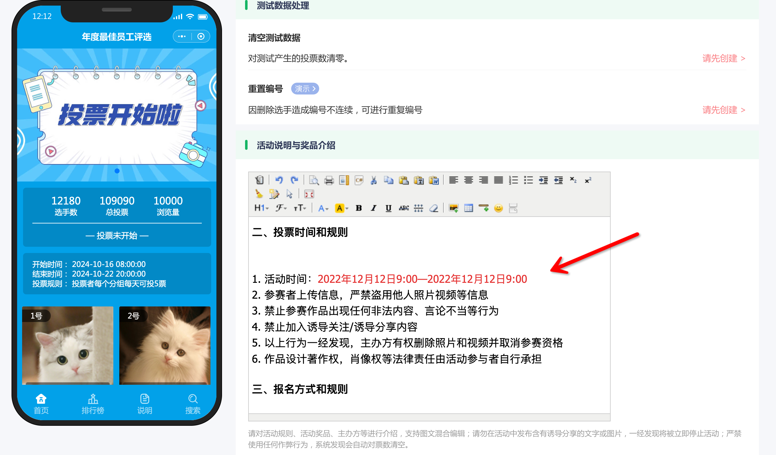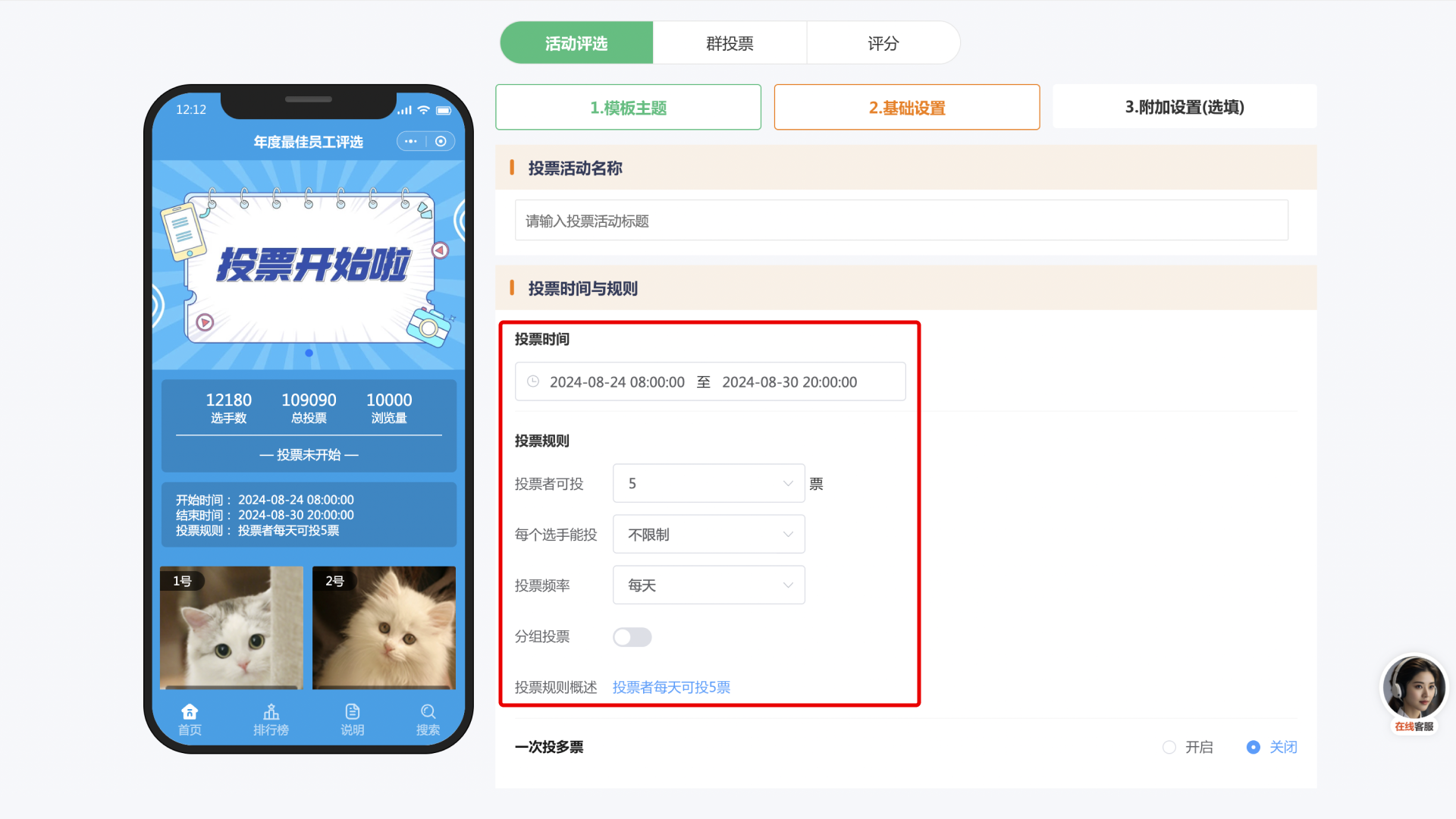 基本信息:为活动起一个吸引人的名称,并撰写详细的活动介绍,明确投票的时间范围。