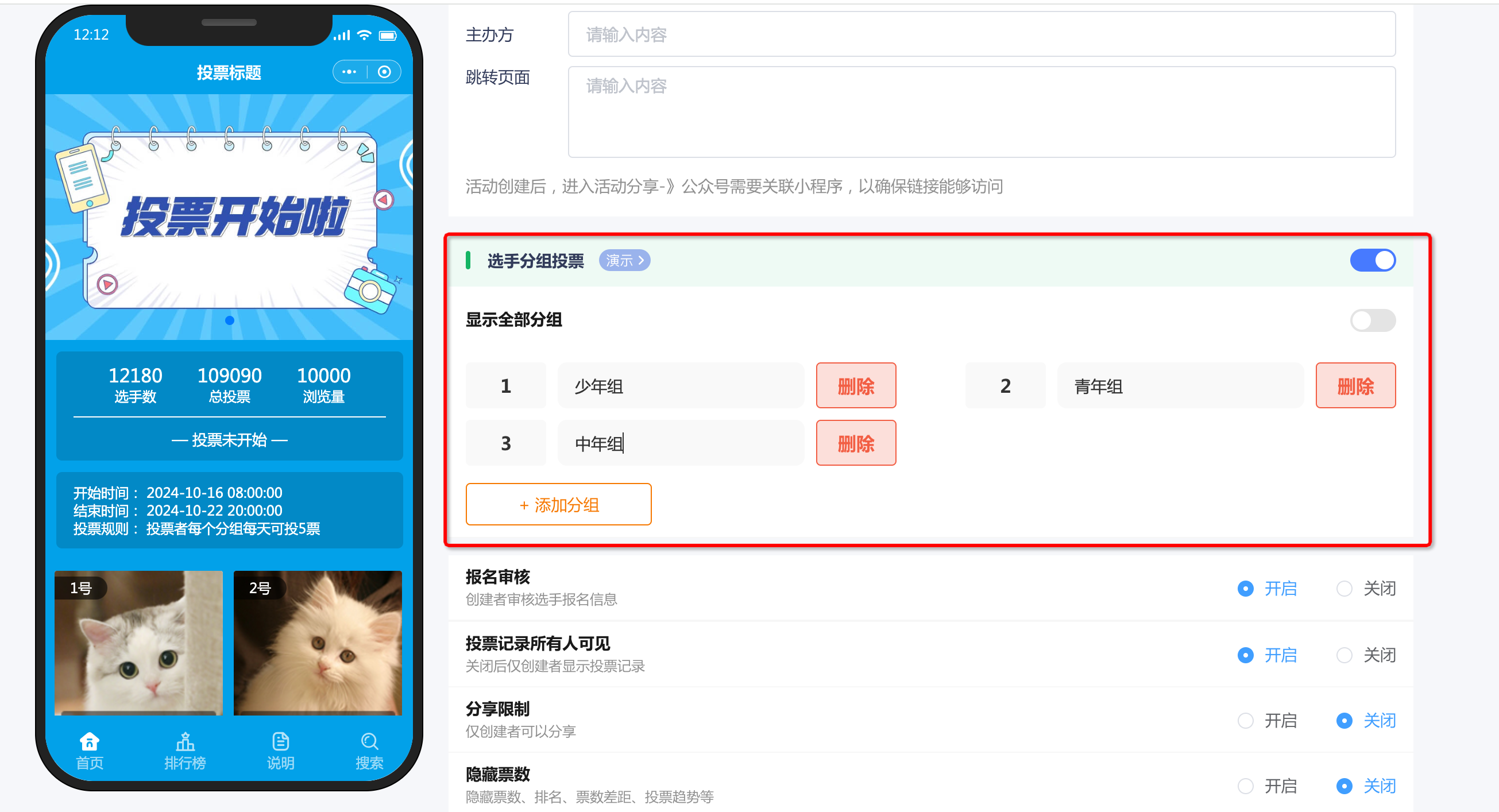 规则与分组:设定投票规则,确保活动的公平与公正。同时,根据实际需要,将参赛选手进行合理分组,便于投票。