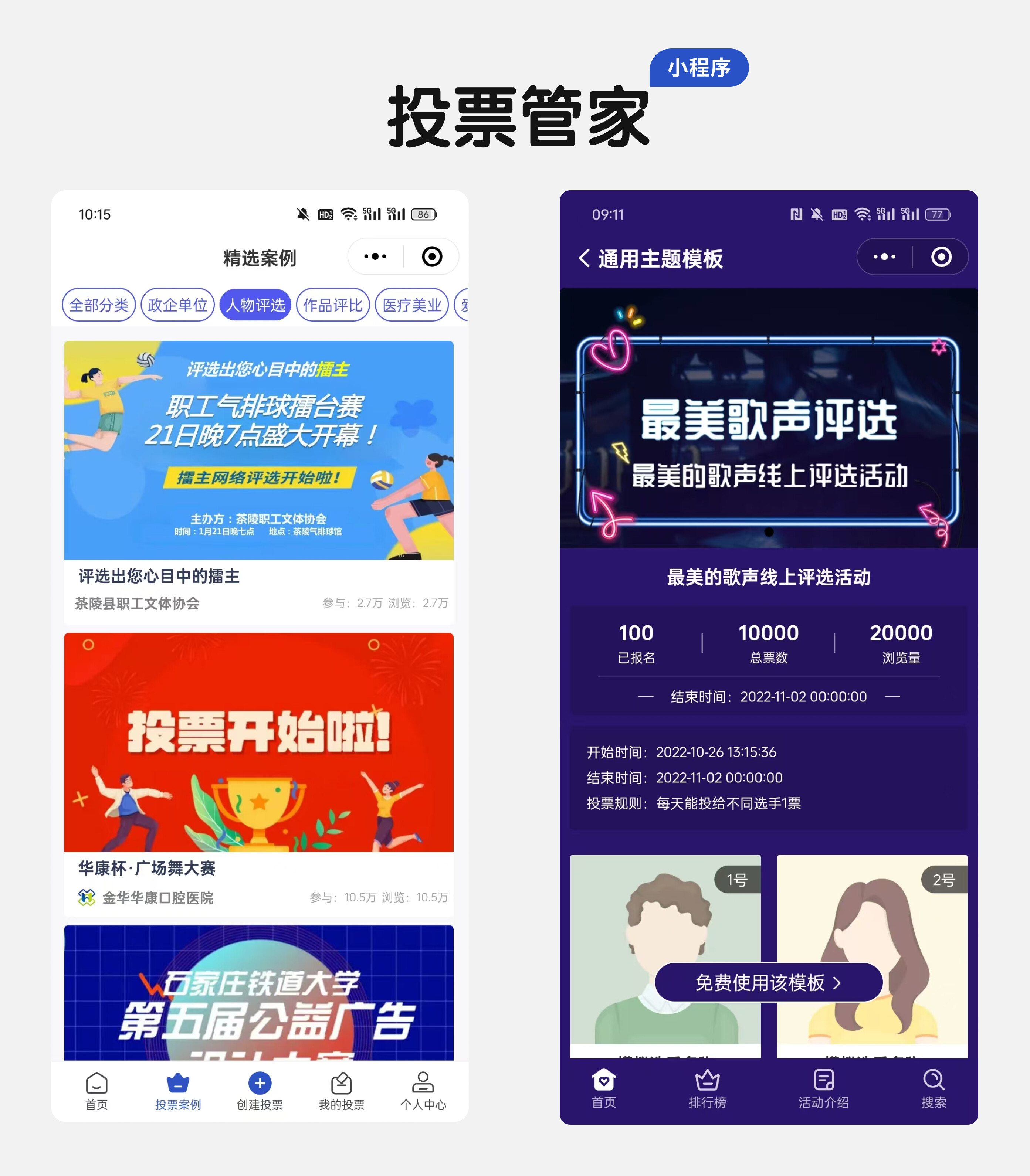 (2)投票管家网站提供了丰富多样的模板和个性化设置选项。挑选一款最合适的模板。
