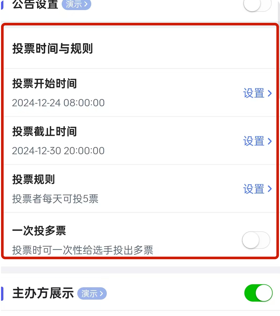 (3)填写投票活动的名称,投票开始时间,投票结束时间,设置投票规则等。