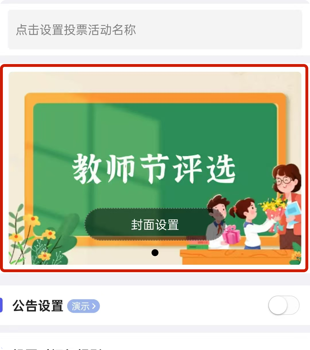 封面设计:既可自行上传封面图片,也可联系投票加加客服进行封面修改。