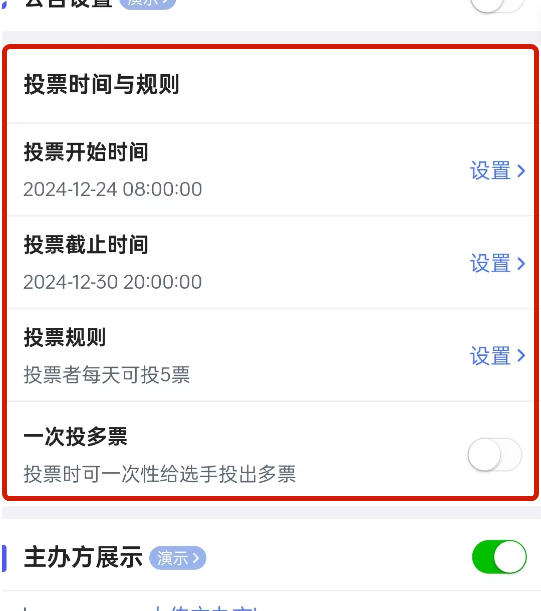 为了让投票活动更具吸引力,接下来请依次完成以下设置: