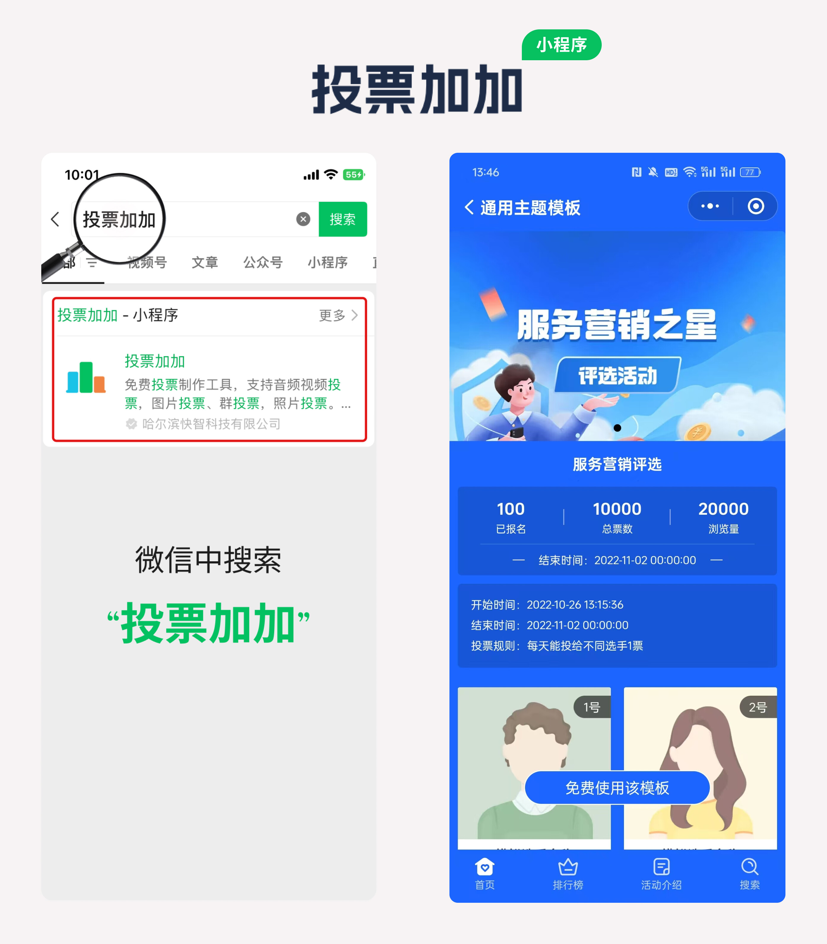 (1)确定投票工具:在微信中搜索“投票加加”小程序,该小程序提供了丰富的模板供您选择。