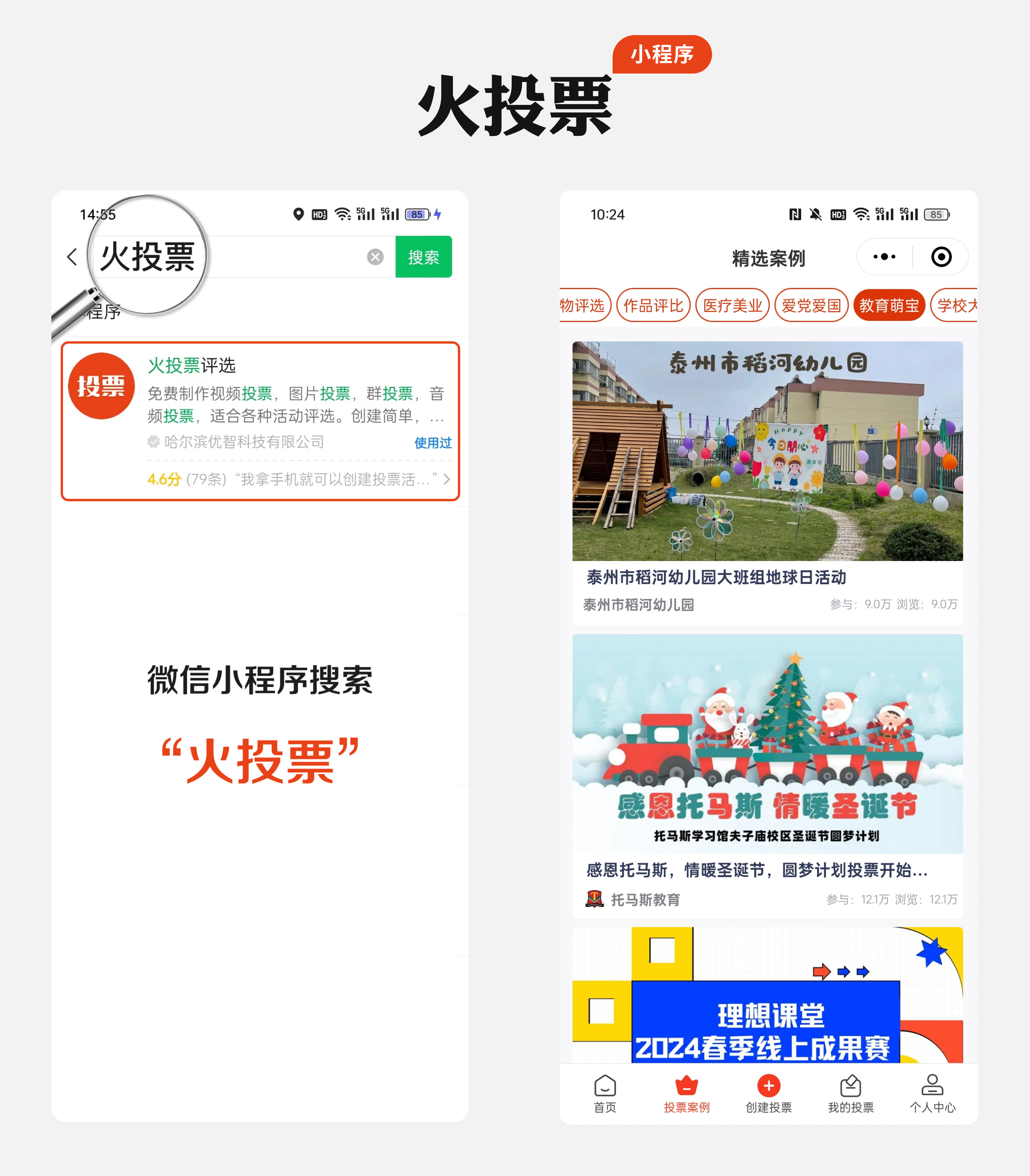 (1)打开微信,搜索火投票小程序,轻松进入投票平台。