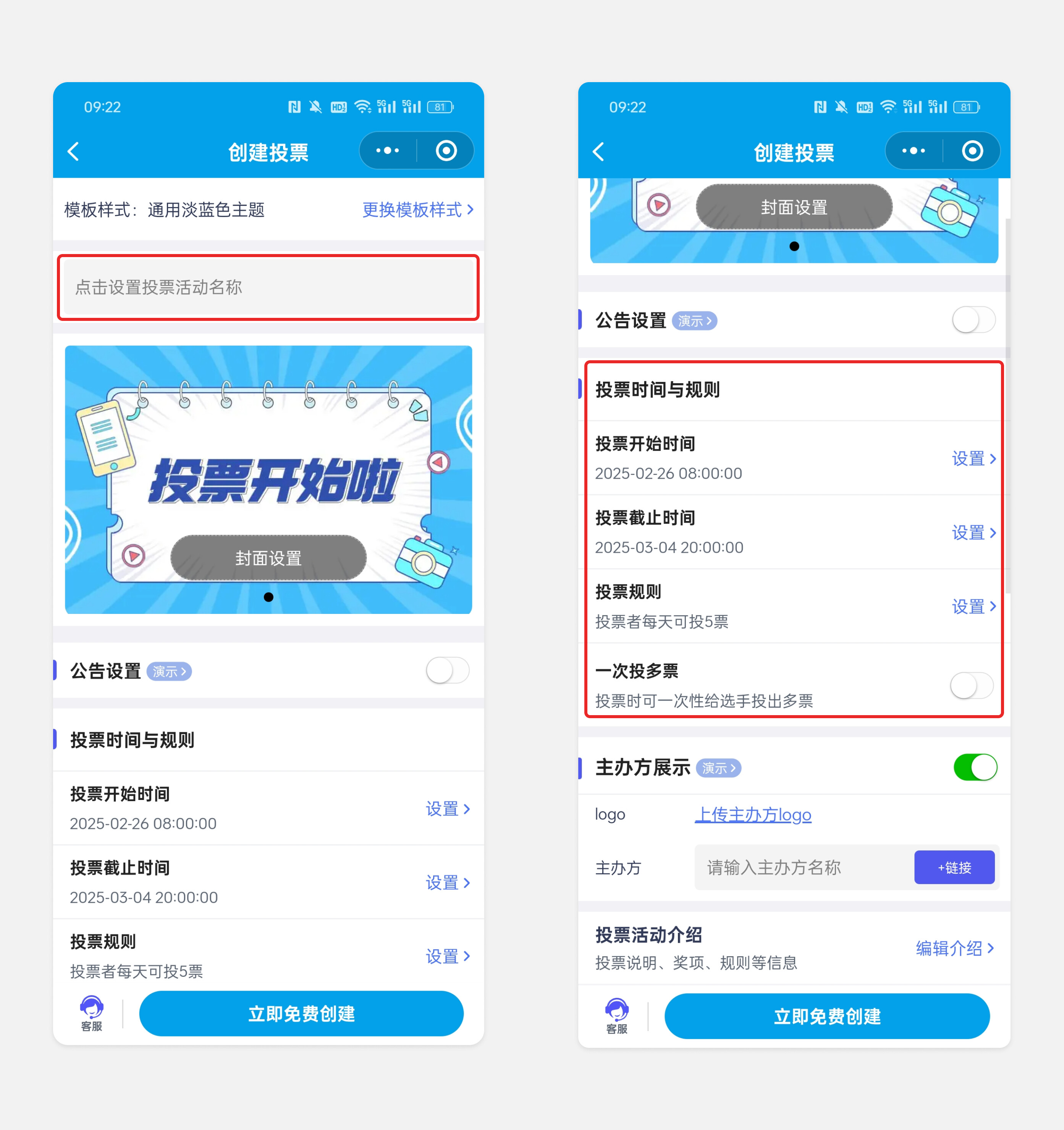 (3)为了让投票活动更加公正、有序,需要设定投票规则。比如,投票方式可以选择单选或多选,根据比赛需求来定;设定投票的起止时间,确保活动在预期的时间段内进行;还可以开启防刷票功能,保障投票结果的真实性。