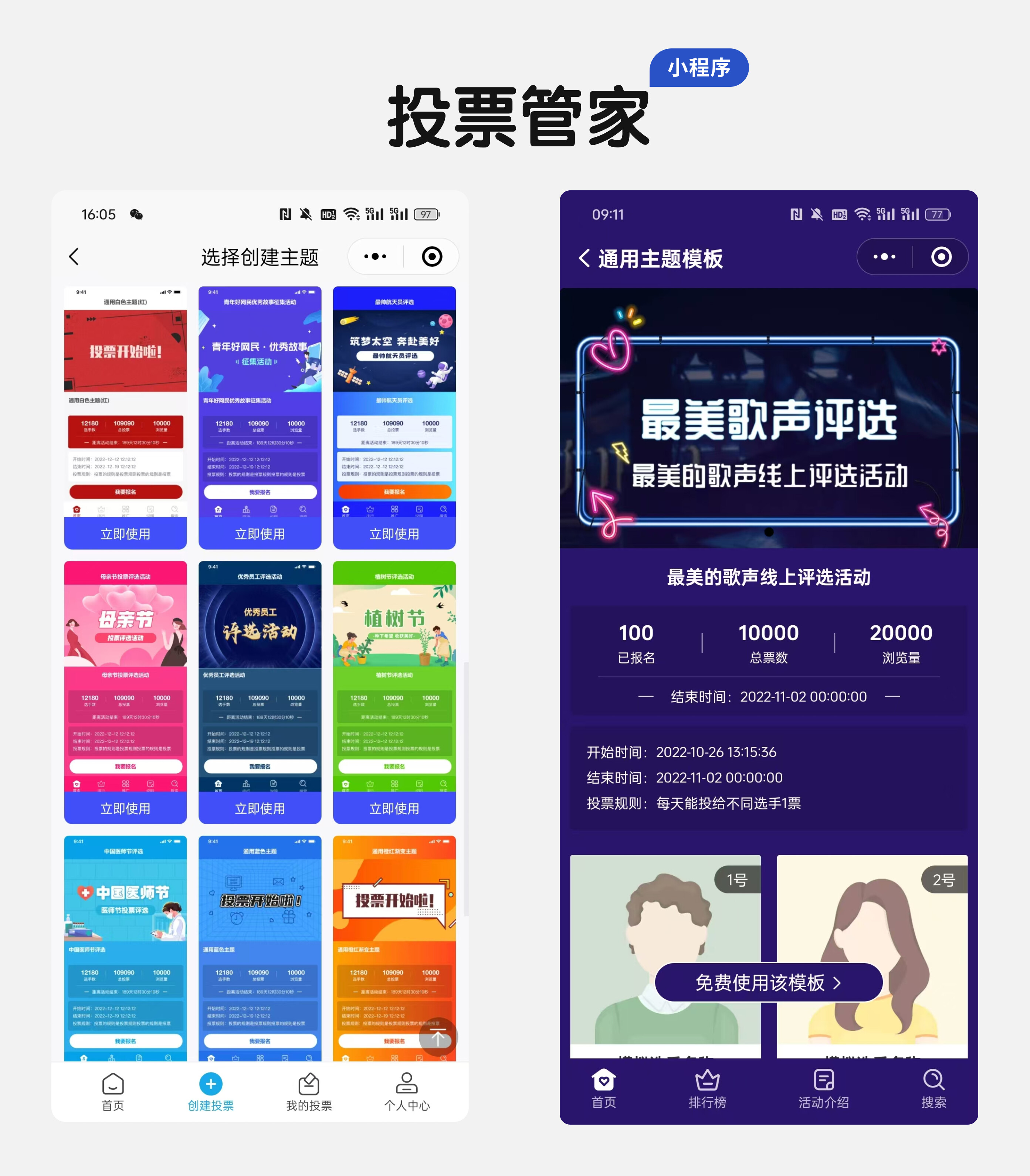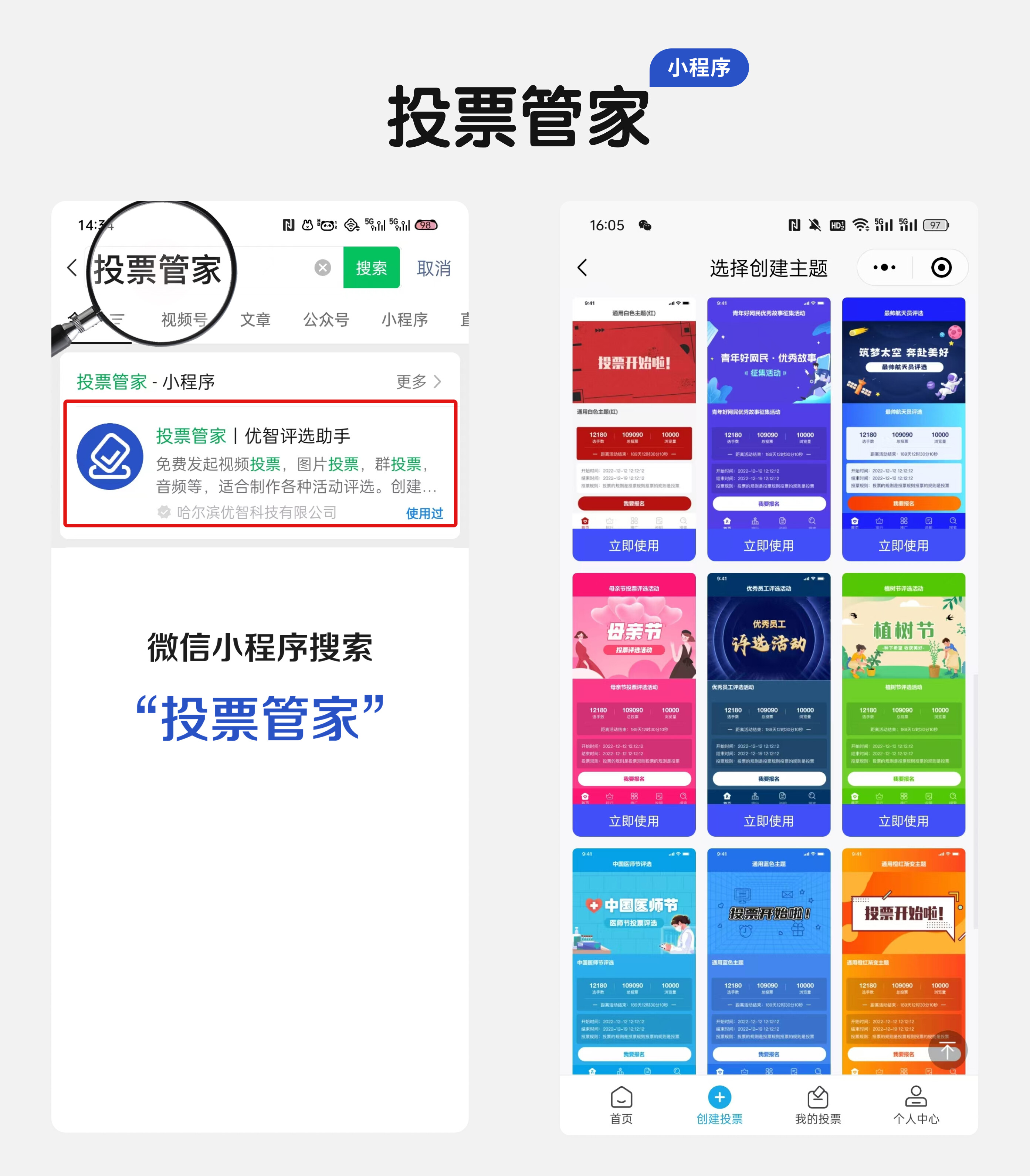 首先,搜索投票管家小程序,该工具提供了众多模板供您选择。