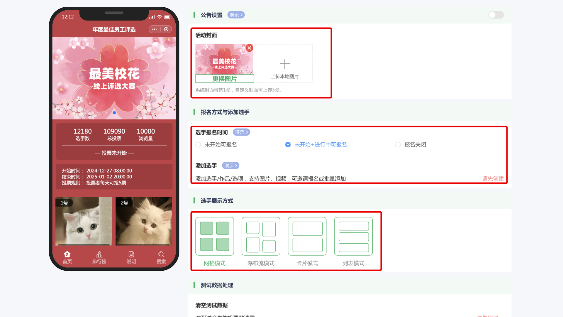 在“投票时间”设置部分,严格依据学校活动的整体安排来精准设定投票的起始和结束时间。既能确保投票者有充裕时间观看演讲视频并慎重投票,又能保证活动在合理的时间周期内顺利完成评选环节。