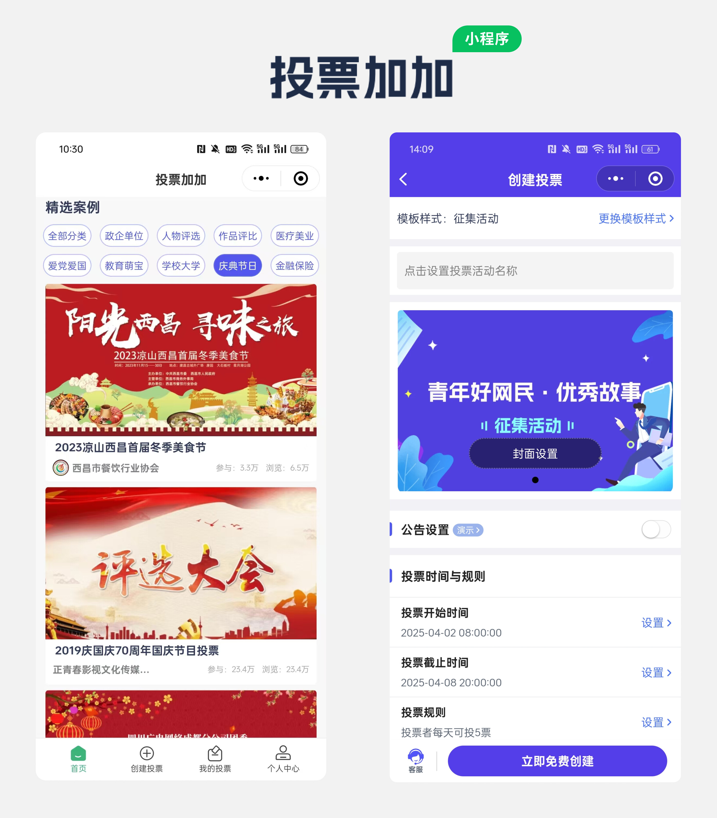 (1)确定投票工具:搜索投票加加小程序,该小程序提供了丰富的模板供您选择。