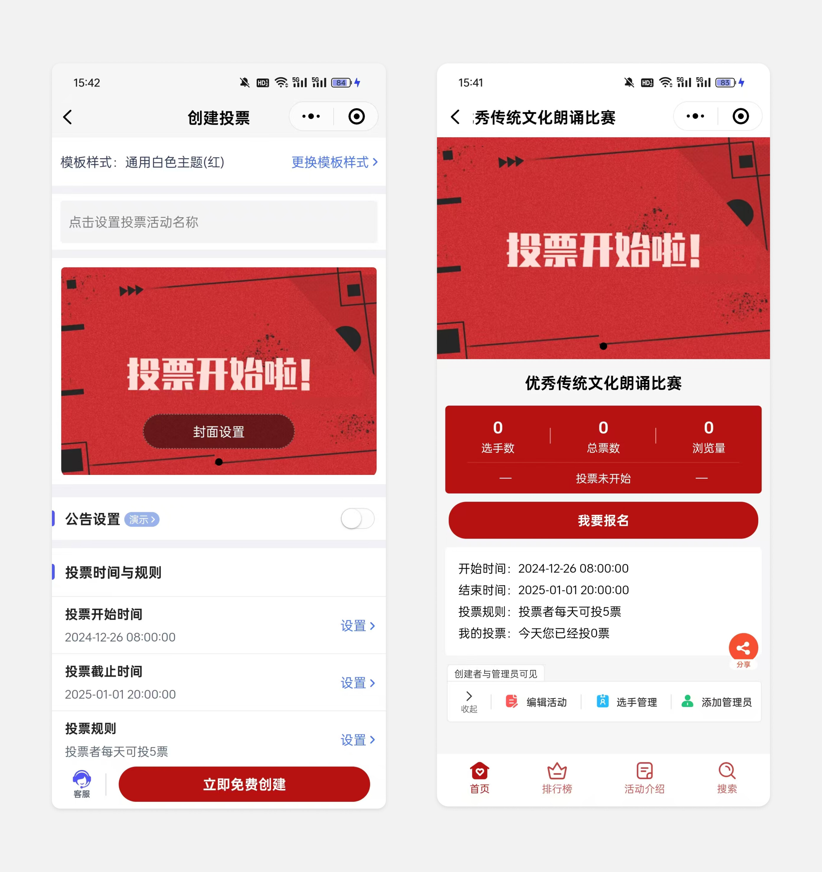 简单直接输入投票标题,比如“XX社区儿童手工大赛”“幼儿园创意手工展”。设定投票周期,建议3-5天,时间适中,家长和孩子都有参与感。可以设置每人每天可投票数,避免刷票,保证公平。