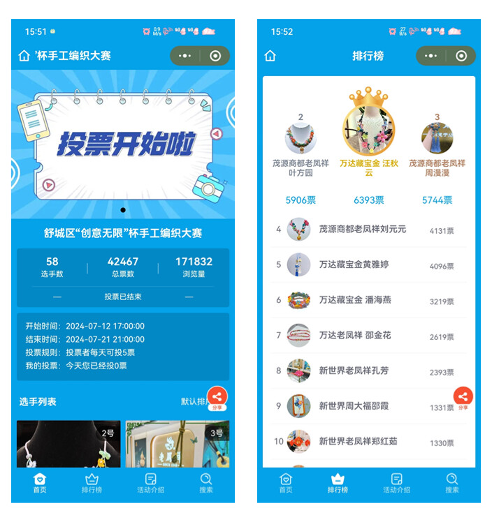 案例一:舒城区举办了舒城区“创意无限”杯手工编织大赛,该活动举办期间,浏览量和参与者都达到了17.1万。