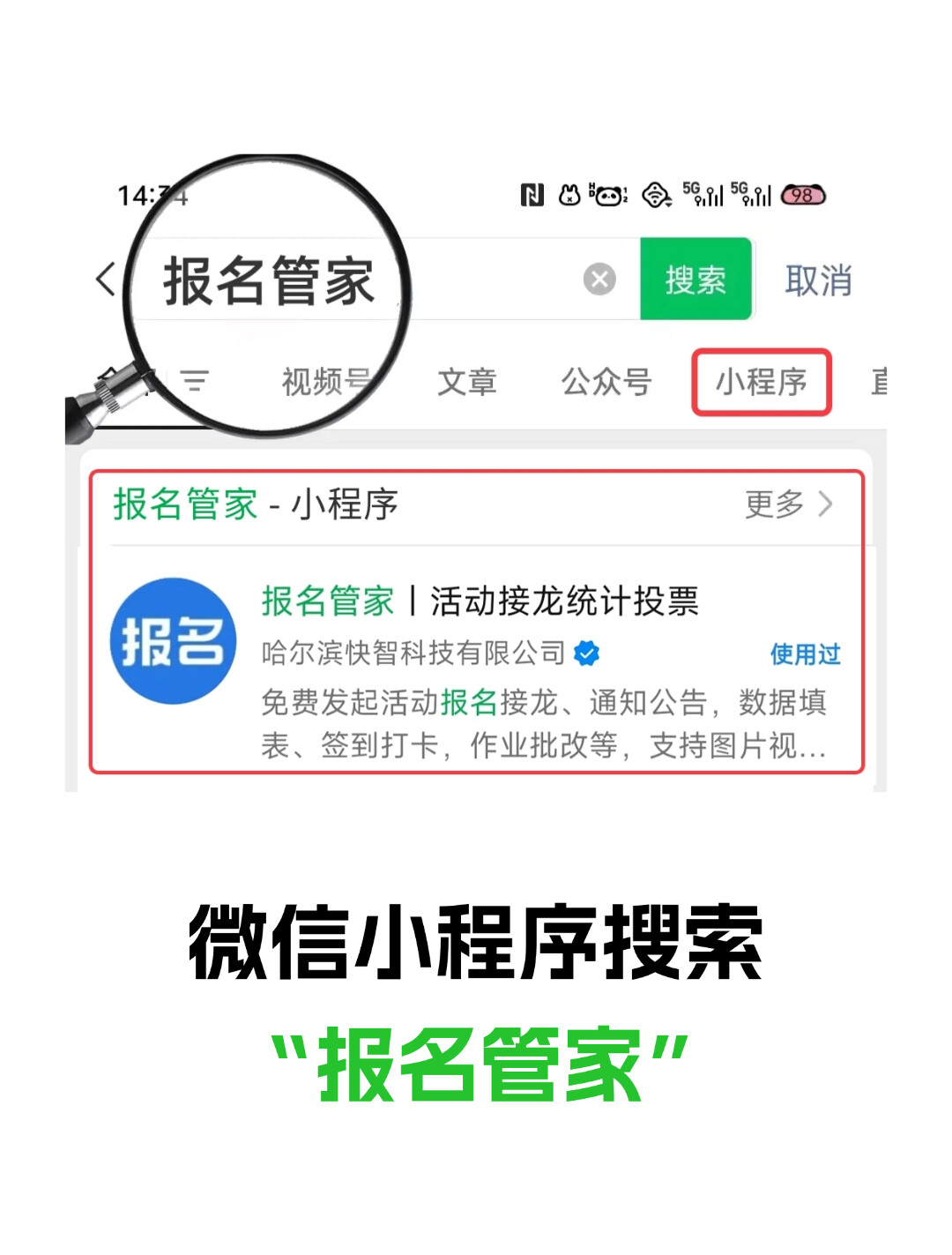 1. 打开微信,进入常用的群接龙系统,如报名管家。