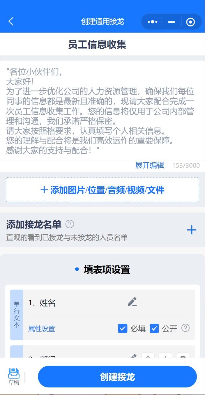 确认接龙各项设置无误后,点击“发布”按钮,群报名接龙便正式生成。