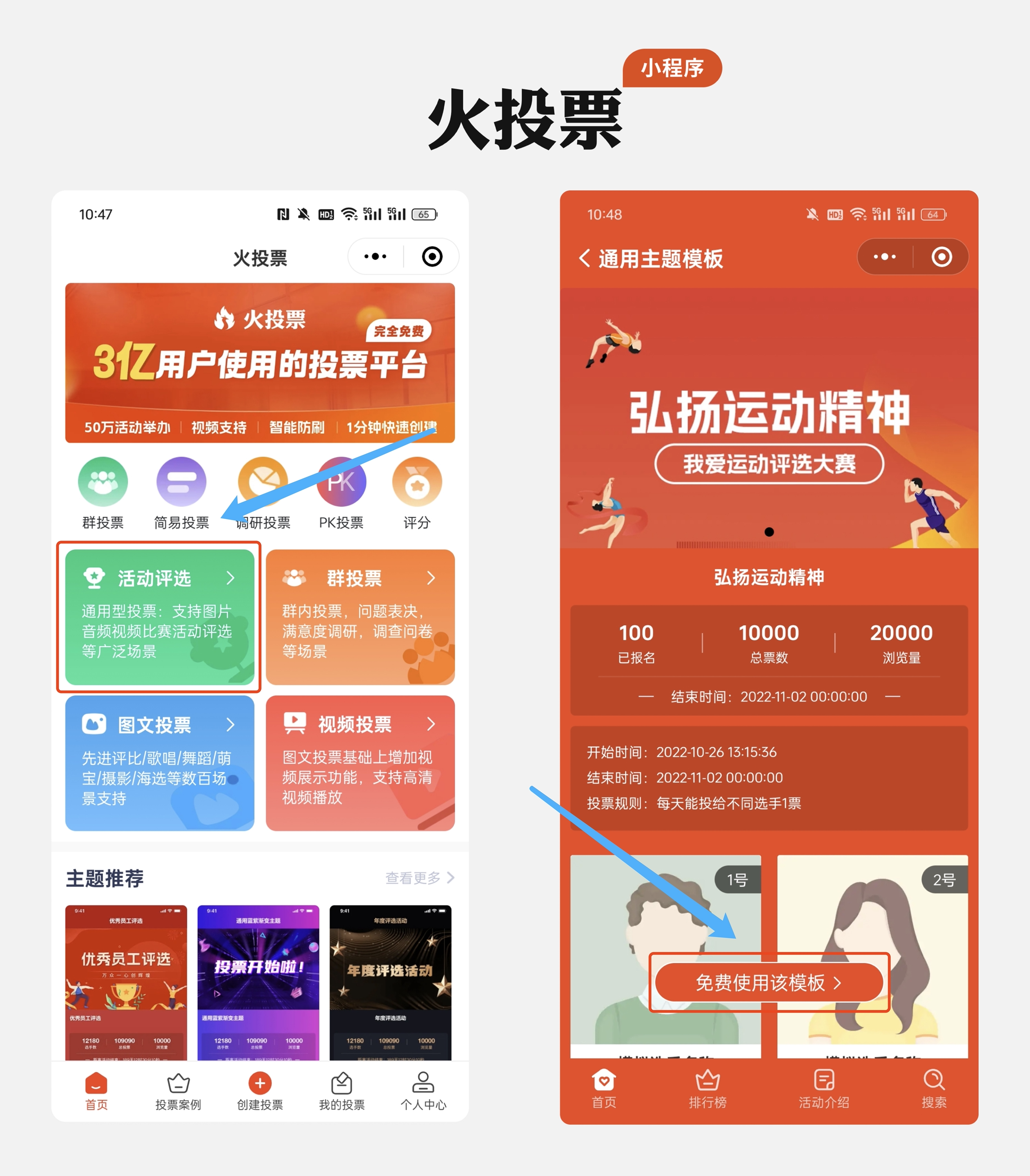 进入到首页后,点击首页创建投票,在海量的投票模板中选择合适的模板。