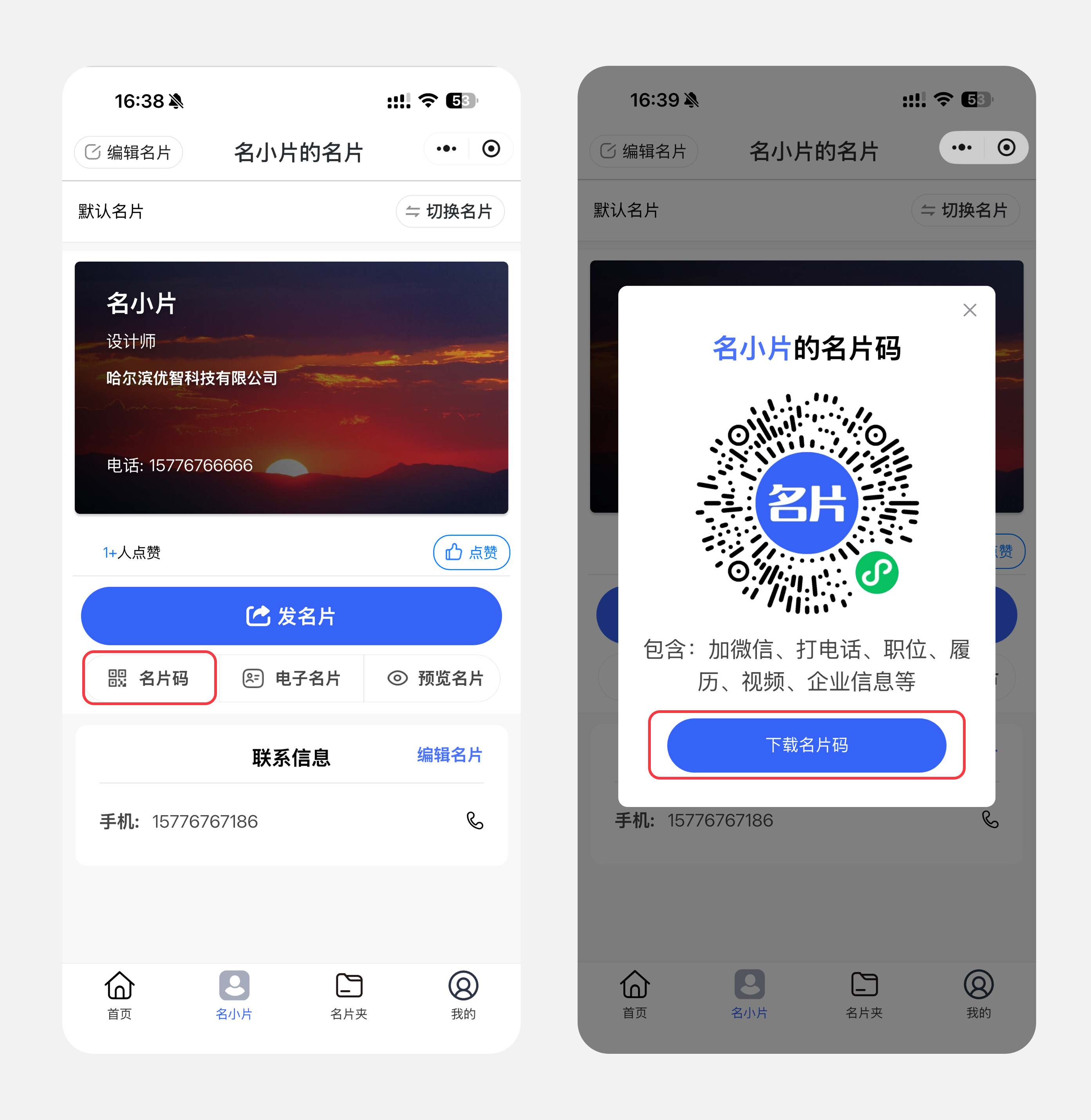完成编辑后,点击“生成名片”。将生成的电子名片二维码或链接通过微信、邮件、短信等方式分享给需要的人,即可实现即时交换。