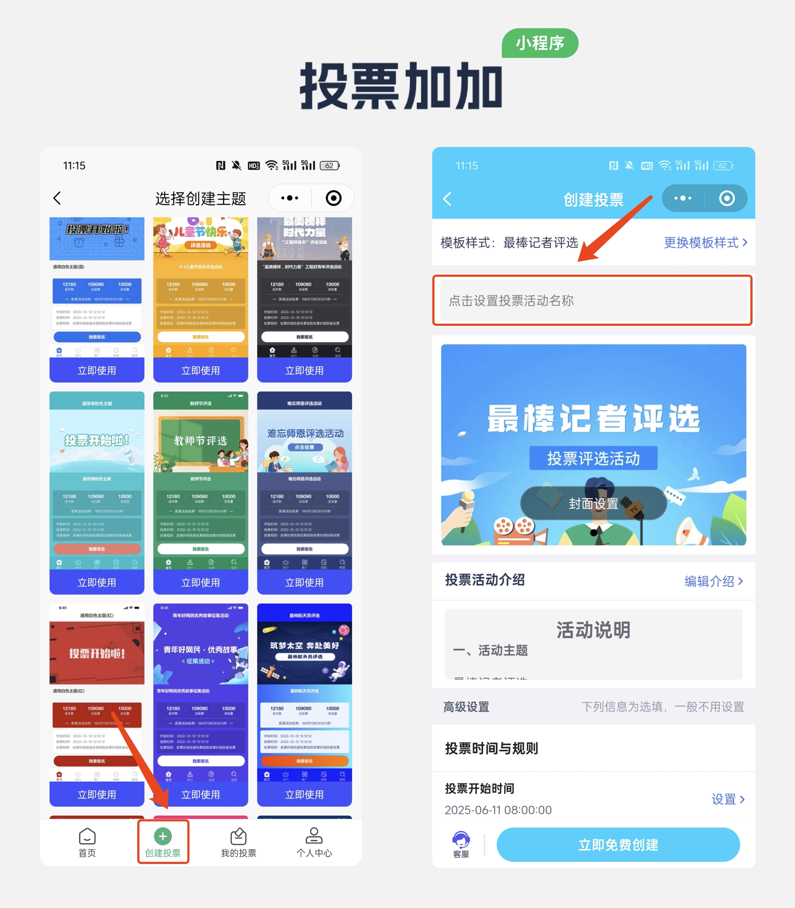 2、选定投票模板:在投票加加小程序主界面,你会看到琳琅满目的投票模板。这些模板涵盖了各种常见的投票场景,如活动评选、意见征集、赛事投票等。你可以根据自身投票需求。
