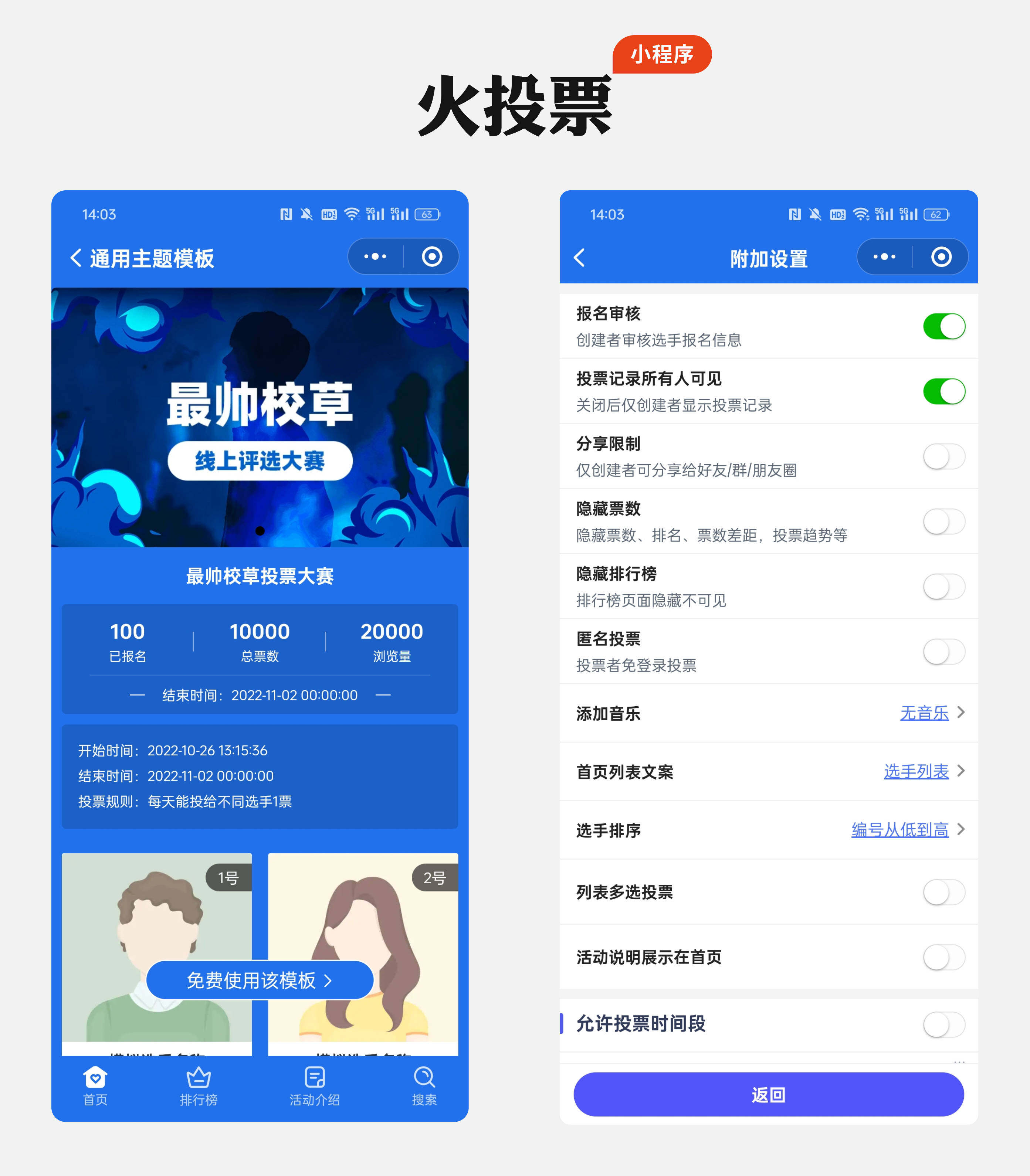 火投票以精细化的投票规则设置为特色,支持 “每人每天最多投 3 票 + 总票数不超过 50 票” 的组合限制,并且能够按照年龄、地域等不同维度进行分组投票。