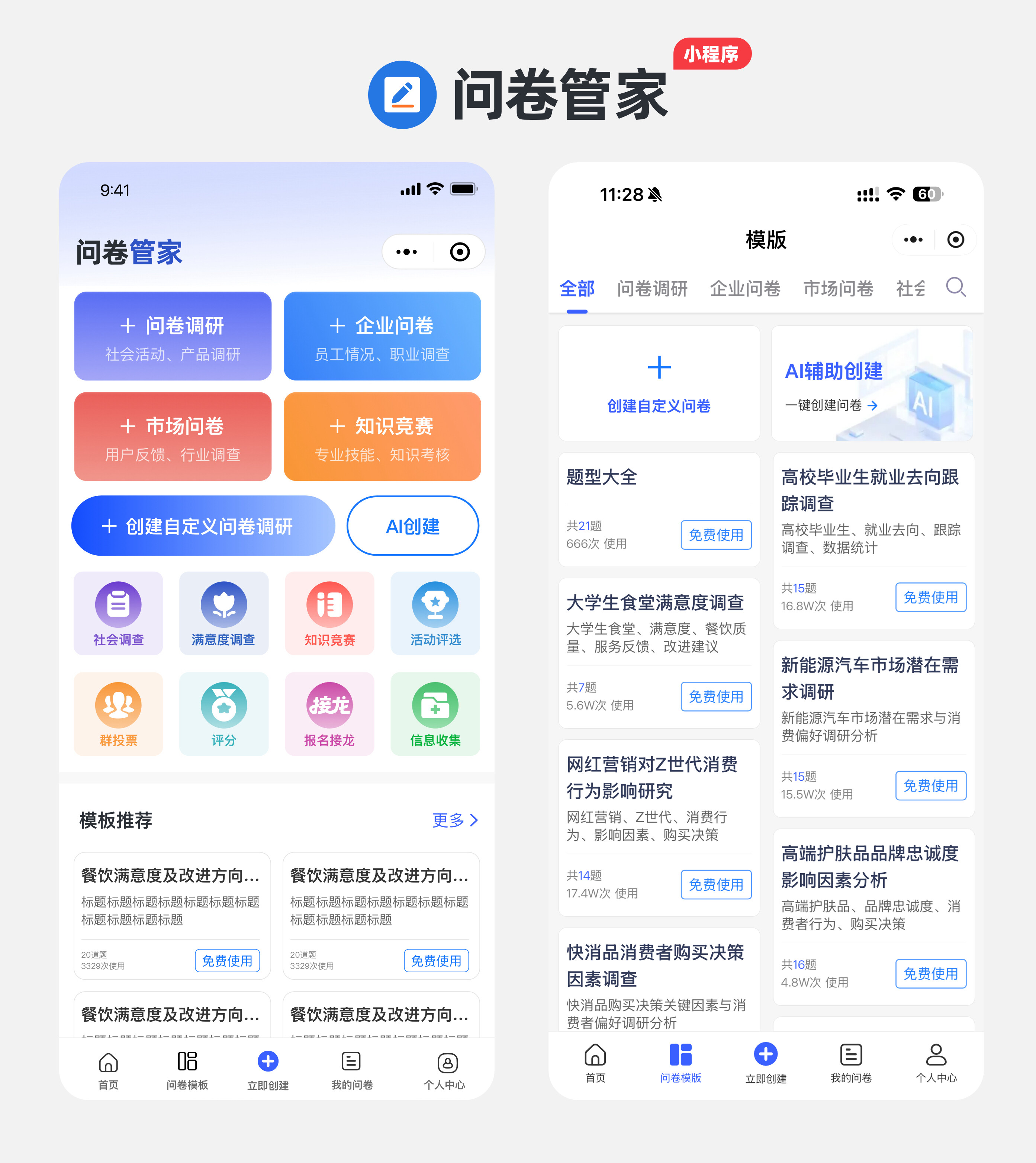 问卷管家小程序的设计初衷,是让需求调查更简单、更高效。我们提供从问卷设计到数据分析的全流程工具,支持多题型、逻辑跳转、移动端适配等功能,帮助企业快速完成一次专业的需求调研。接下来,我们将详细介绍如何通过问卷管家开展顾客需求调查。